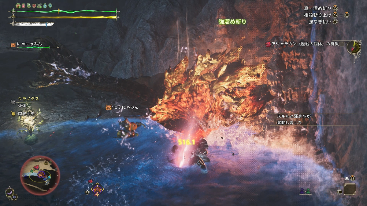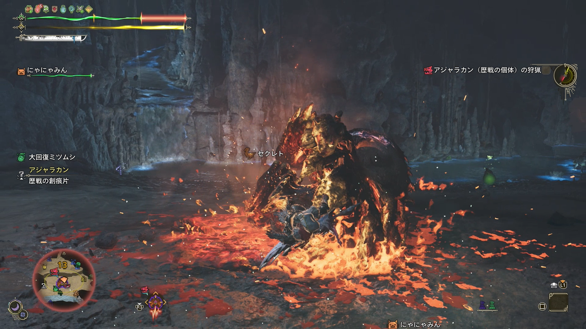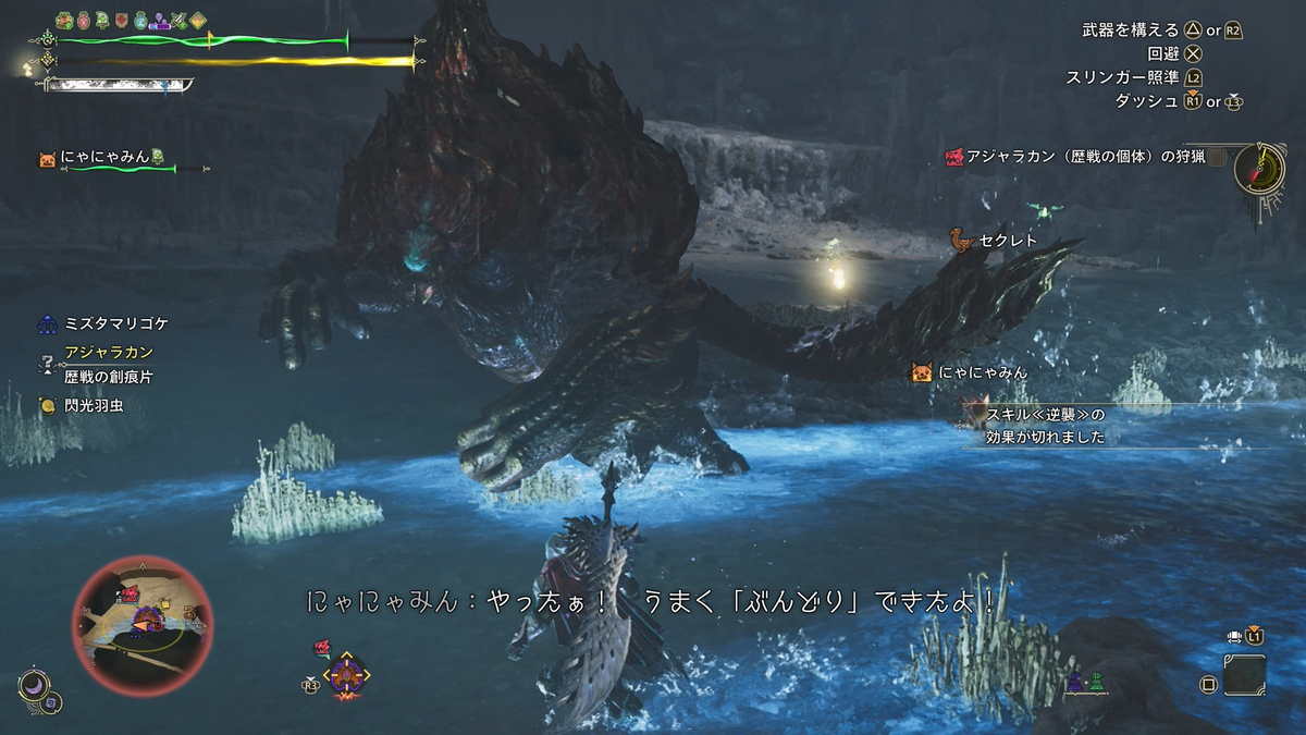 少しわかってきたら攻撃をしてモンスターを怒らせて、そしてまた武器を納めて観察タイムに入ります。